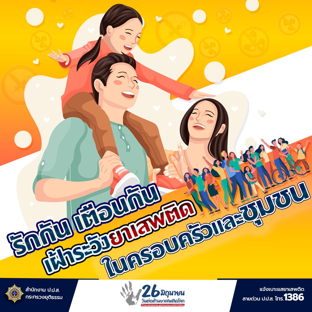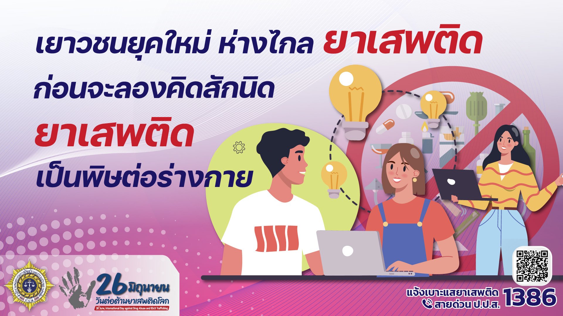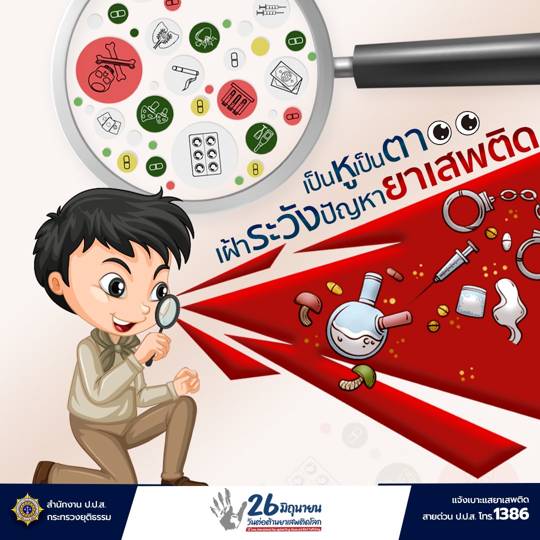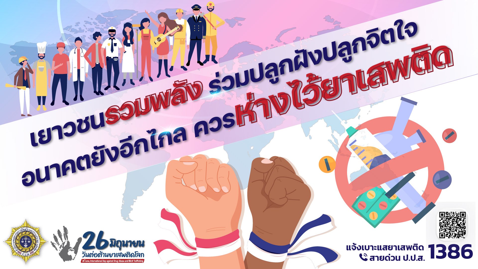 องค์การสหประชาชาติ ได้กำหนดให้วันที่ 26 มิถุนายนของทุกปี เป็นวันต่อต้านยาเสพติดโลก เพื่อให้ทุกประเทศทั่วโลก ได้ตระหนักถึงภัยคุกคามของปัญหายาเสพติด ที่มีผลกระทบต่อมวลมนุษยชาติ ประเทศไทย ในฐานะประเทศสมาชิก ได้ปฏิบัติและยืนยันเจตนารมณ์ร่วมกับประชาคมโลกในการต่อต้านยาเสพติด มาตั้งแต่ปี 2530 จนถึงปัจจุบัน
