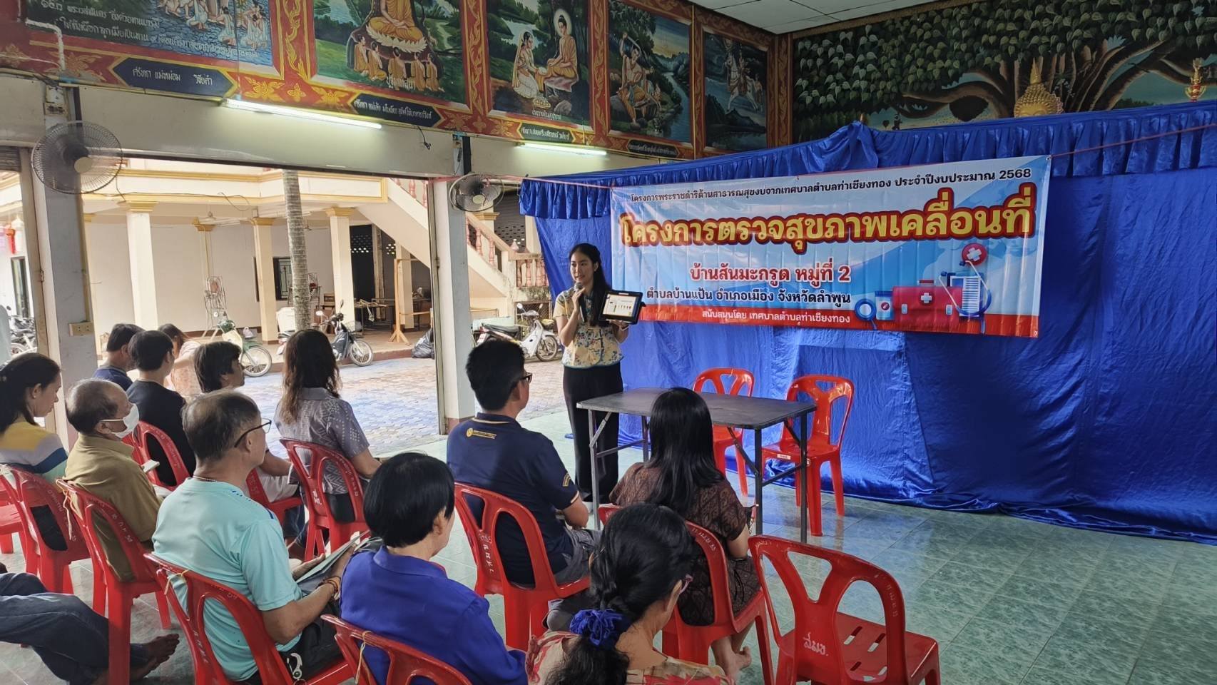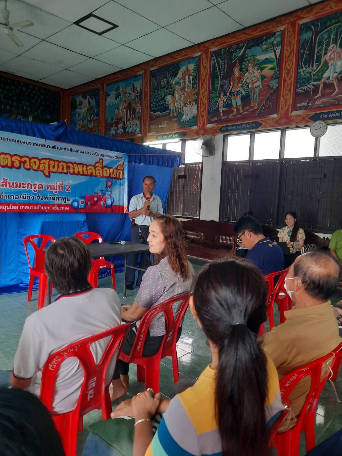 วันอาทิตย์ ที่ 17 สิงหาคม 2568 นายศักดิ์สิน เป็งบ่อง นายกเทศมนตรีตำบลท่าเชียงทอง พร้อมด้วย คณะผู้บริหาร ผู้อำนวยการกองสาธารณสุขและสิ่งแวดล้อมเทศบาลตำบลท่าเชียงทอง เข้าร่วมโครงการพระราชดำริฝึกอบรมให้ความรู้ "โครงการตรวจสุขภาพเคลื่อนที่" ร่วมกับผู้นำชุมชน อสม.ประจำหมู่บ้าน ผู้สูงอายุและประชาชนในพื้นที่