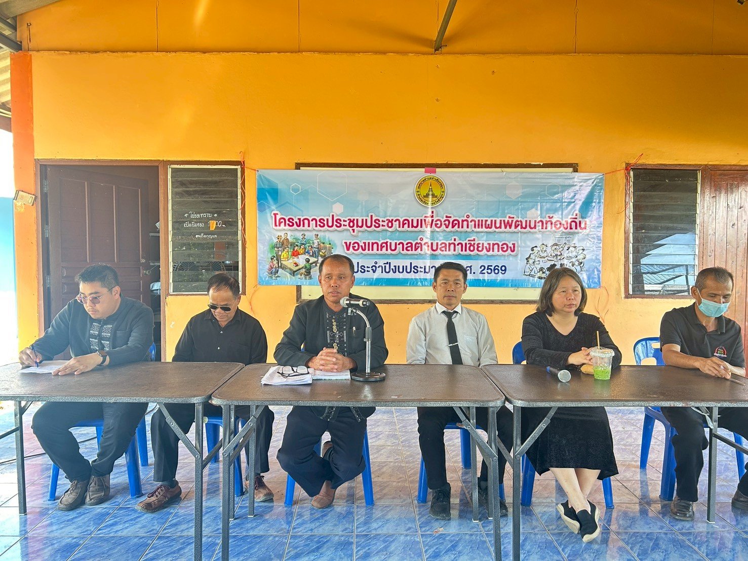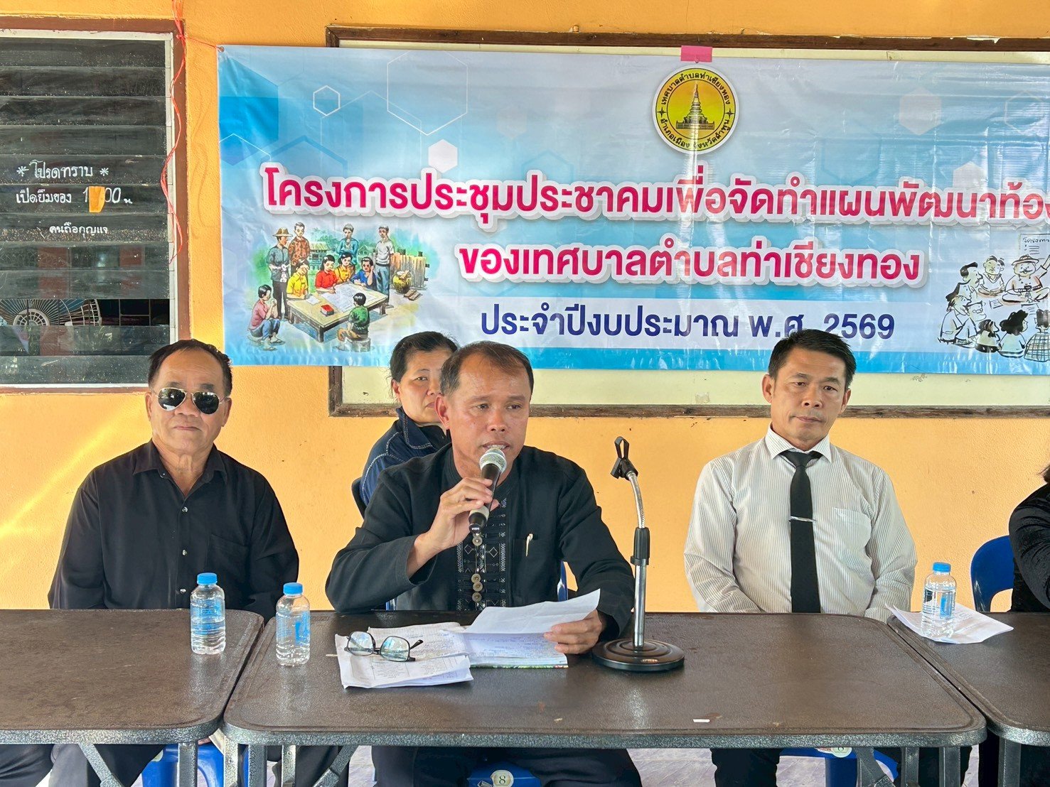 วันพฤหัสบดีที่ 25 ธันวาคม 2568 เวลา 09.00 น. เป็นต้นไป นายศักดิ์สิน เป็งบ่อง นายกเทศมนตรีตำบลท่าเชียงทอง พร้อมด้วยคณะผู้บริหาร สมาชิกสภาเทศบาลฯ หัวหน้ากอง ผู้นำชุมชน พนักงานและเจ้าหน้าที่ ร่วมโครงการประชุมประชาคมเพื่อจัดทำแผนพัฒนาท้องถิ่น ของเทศบาลตำบลท่าเชียงทอง ประจำปีงบประมาณ พ.ศ. 2569