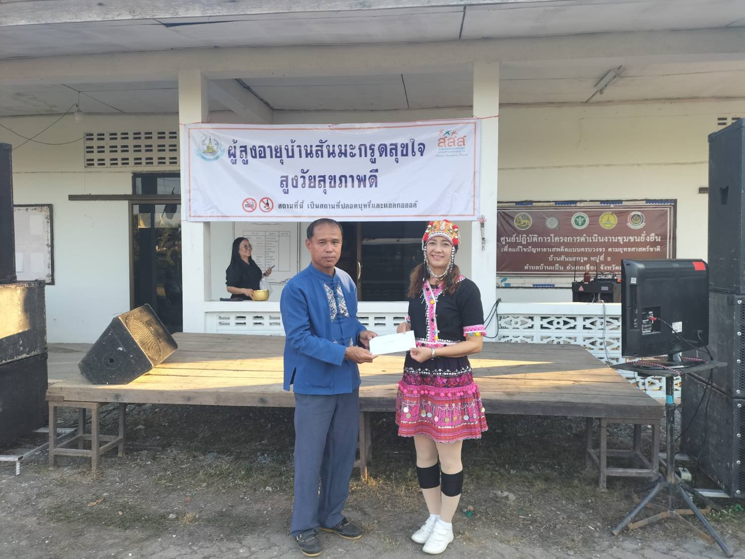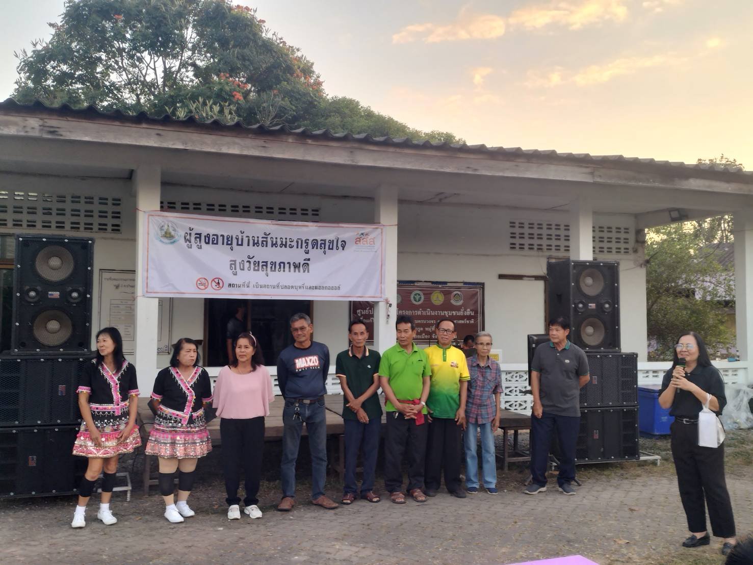 วันที่ 28 ธันวาคม 2568 เวลา 16.30 น. นายศักดิ์สิน เป็งบ่อง นายกเทศมนตรีตำบลท่าเชียงทอง พร้อมด้วยคณะผู้บริหาร กำนันตำบลบ้านแป้น ผู้อำนวยการ รพ.สต.บ้านป่าซางน้อย และผู้นำชุมชนในพื้นที่ ร่วมกิจกรรมตามโครงการผู้สูงอายุบ้านสันมะกรูดสุขใจ สูงวัย สุขภาพดี โดยได้รับสนับสนุนงบประมาณจากสำนักงานกองทุนสนับสนุนการสร้างเสริมสุขภาพ สสส. ซึ่งมีวัตถุประสงค์ เพื่อส่งเสริมสุขภาพผู้สูงอายุบ้านสันมะกรูดมีสุขภาพกายและสุขภาพจิตดี และเพื่อปรับเปลี่ยนพฤติกรรมผู้สูงอายุบ้านสันมะกรูด ตามหลัก 3 อ. 2 ส. 1ย. ณ โรงเรียนวัดบ้านสันมะกรูด (โรงเรียนผู้สูงอายุ) โดยมีท่านนพพร นิลณรงค์ ประธานสถาบันวิจัยหริภุญชัย วิทยาลัยสงฆ์ลำพูน มหาวิทยาลัยมหาจุฬาลงกรณราชวิทยาลัย เป็นประธานเปิดโครงการในครั้งนี้