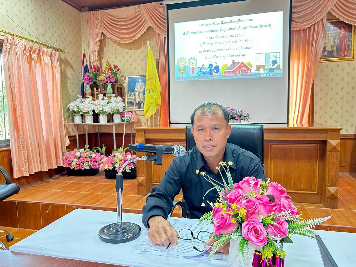 วันพฤหัสบดีที่ 29 มกราคม 2569 เวลา 13.30 น.นายศักดิ์สิน เป็งบ่อง นายกเทศมนตรีตำบลท่าเชียงทอง พร้อมด้วยคณะผู้บริหาร หัวหน้าสำนักปลัดรักษาราชการแทนปลัดเทศบาลตำบลท่าเชียงทอง เจ้าหน้าที่พัฒนาชุมชน เจ้าหน้าที่กองช่าง ผู้นำชุมชน สมาชิกสภาฯ และผู้ที่เกี่ยวข้อง เข้าร่วมประชุมชี้แจงเพื่อคัดเลือกผู้ที่เหมาะสมเข้ารับการปรับสภาพแวดล้อมที่อยู่อาศัยสำหรับผู้พิการและผู้สูงอายุ ประจำปีงบประมาณ พ.ศ. 2569