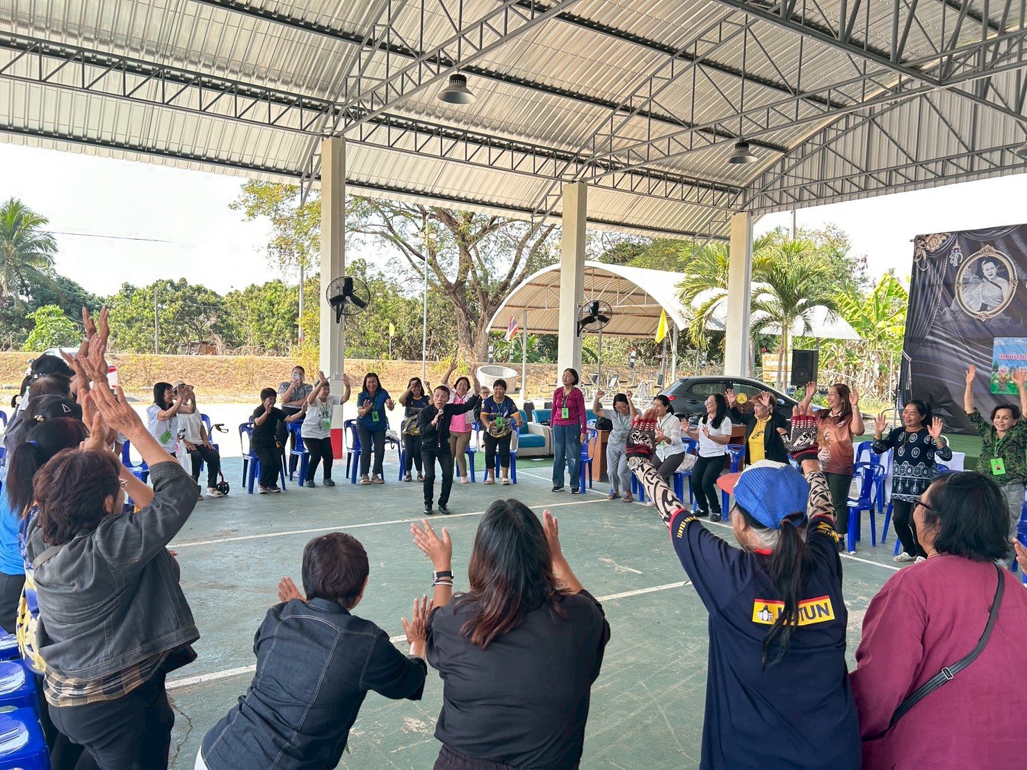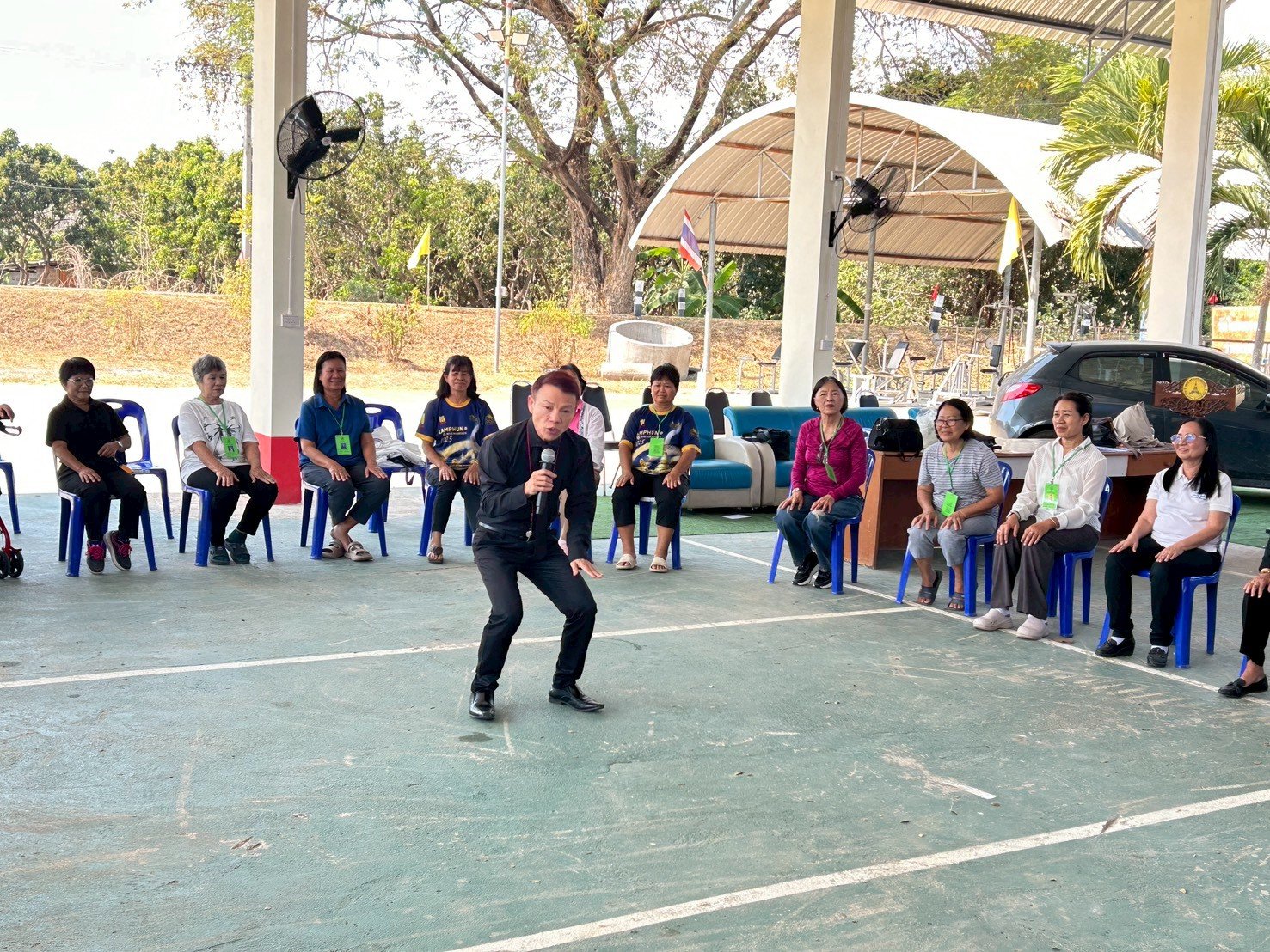 ช่วงบ่าย กิจกรรมนันทนาการคลายเครียดผู้สูงอายุเพื่อผู้สุขภาพกายใจที่แข็งแรง โดยนายนิสรณ์ ตุ่นจี่ ตำแหน่ง นักวิชาการสาธารณสุขชำนาญการรพ.สต. ตำบลแม่แรง เป็นวิทยากร