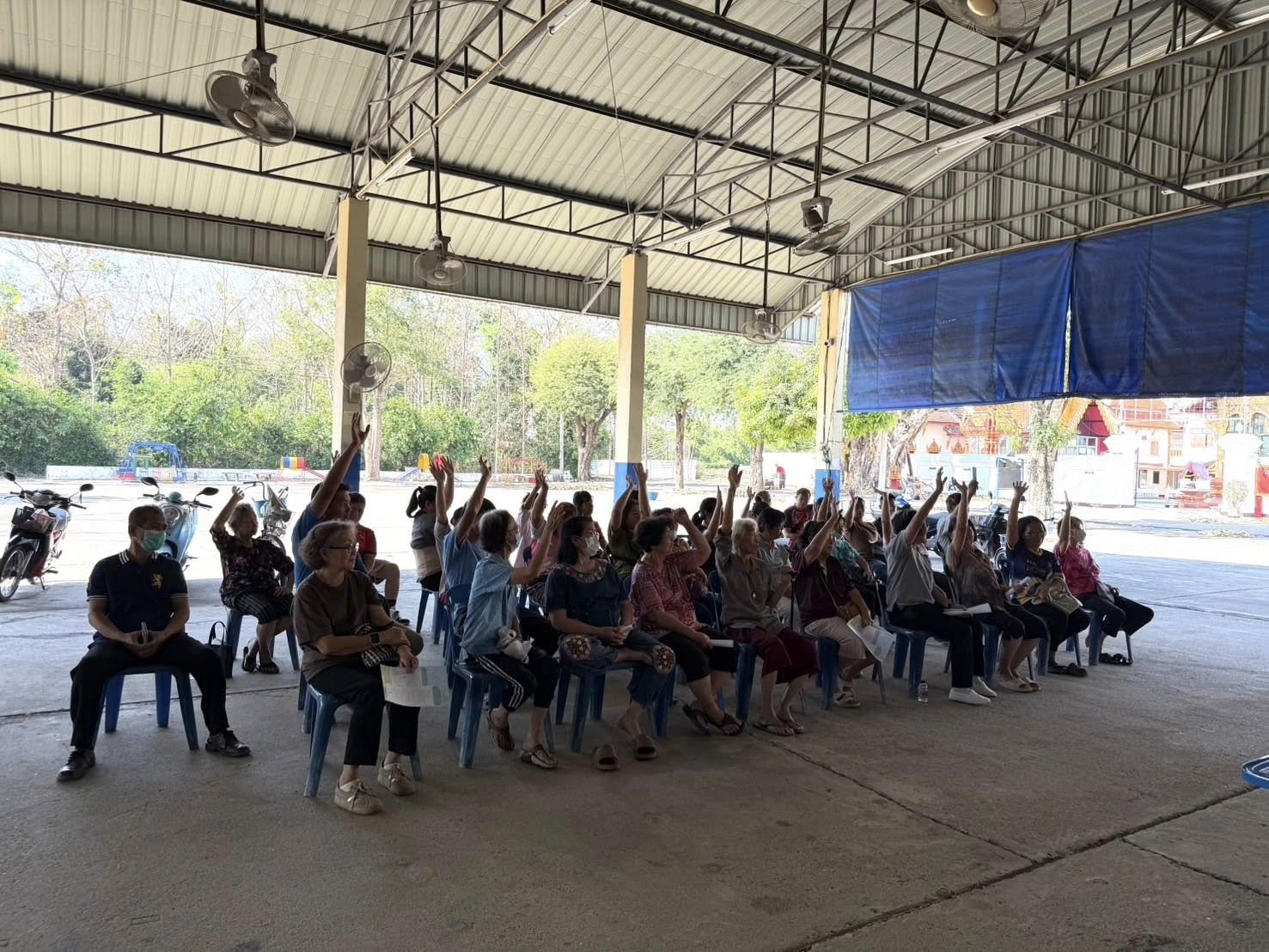 วันอาทิตย์ที่ 22 มีนาคม 2569 เวลา 09.00 น. นายศักดิ์สิน เป็งบ่อง นายกเทศมนตรีตำบลท่าเชียงทอง พร้อมด้วย คณะผู้บริหาร หัวหน้าสำนักปลัด ผู้อำนวยการกองสาธารณสุขและสิ่งแวดล้อมและเจ้าหน้าที่ที่เกี่ยวข้อง ลงพื้นที่ประชาคมอัตราค่าธรรมเนียมเกี่ยวกับการจัดการสิ่งปฏิกูลมูลฝอยและร่วมเปิดโครงการอบรมการพอกเข่าด้วยสมุนไพรสูตรร้อนในผู้ที่มีภาวะข้อเข่าเสื่อมบ้านป่าซางน้อย ม.1 สนับสนุนโดย กองทุน สปสช. เทศบาลตำบลท่าเชียงทอง